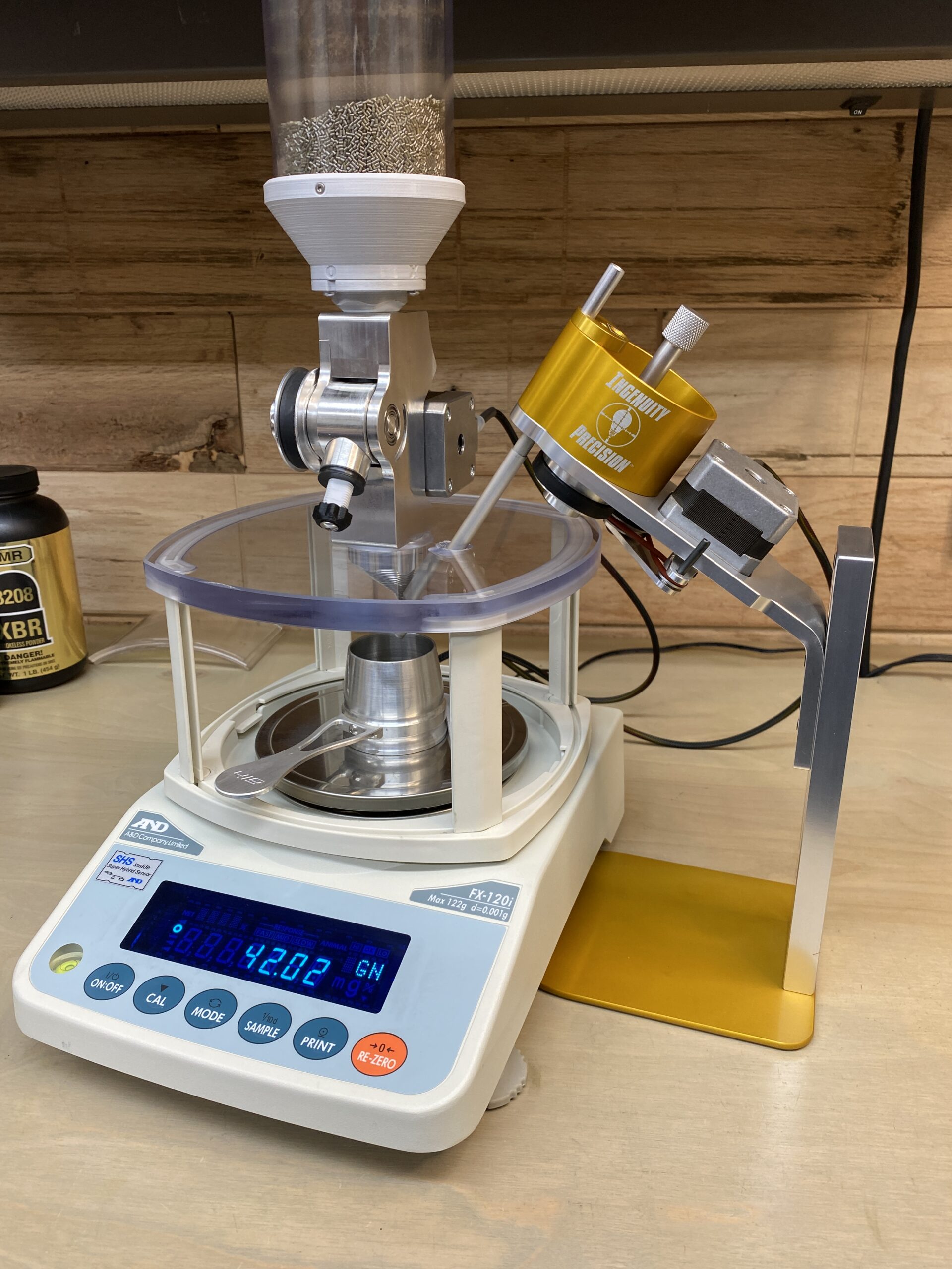 The Ingenuity Powder Meter can be used manually or as an add-on (plug and play) upgrade to the Autotrickler V1,V2,and,V3 electronics, which replaces the conventional straw trickler contributing additional speed and accuracy to the system. By properly adjusting the initial powder throw and ramp speed controller, the Ingenuity Powder Meter will reduce your charge times nearly in half while still retaining the accuracy of the system as dictated by the electronics and scale being used.